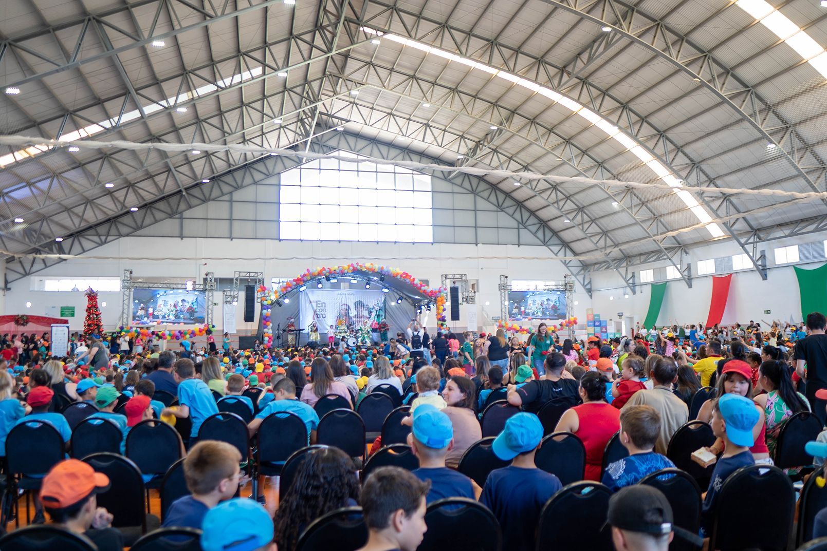 O Natal de 3.300 crianças da Região Central do Rio Grande do Sul foi comemorado em conjunto e em grande estilo na festa mais esperada do ano, o 7º Encontro de Projetos Culturais e Educacionais da Fundação Antonio Meneghetti. Já parte do calendário dos estudantes e professores de 16 municípios beneficiados pelos projetos da FAM, o evento realizado no Centro Esportivo Educacional Antonio Meneghetti no dia 4 de dezembro teve patrocínio da Caixa Econômica Federal e governo federal, celebrando com cor, alegria e magia todas as conquistas do ano.