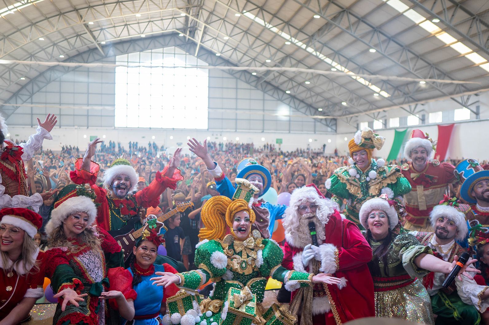 De bonés multicoloridos que receberam logo na chegada, vindos em 50 ônibus, os pequenos se divertiram e dançaram músicas clássicas de Natal com a presença do Papai Noel e seus ajudantes, que apresentaram o espetáculo Cantoria dos Duendes. Deliciaram-se com lanches – suco e sanduíche – e, de presente de Natal, além de chocolates, ganharam o lançamento de 2024 da Coleção Fanciullo, o livro Volta ao Mundo: Desbravando Novas Culturas. O livro, perfeito para ser lido durante as férias, faz um verdadeiro passeio por 15 países a partir da pesquisa e do olhar de estudantes da AMF.
