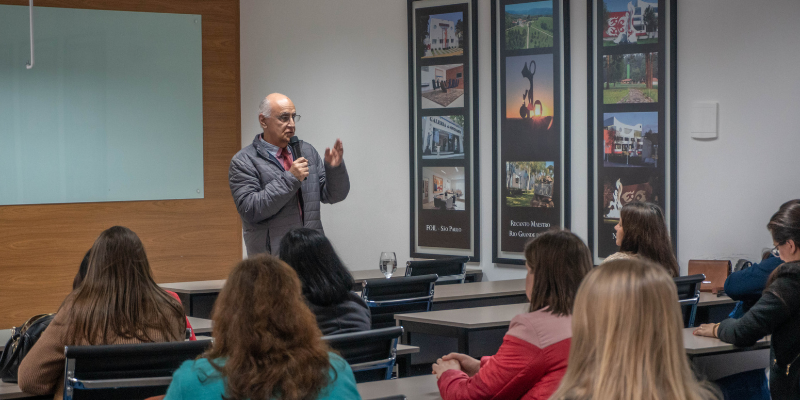 A Formação abordou a importância de o professor reservar um momento para si mesmo, percebendo seu corpo, e a conexão com a natureza, vivenciando a experiência no Centro Internacional de Arte e Cultura Humanista Recanto Maestro.