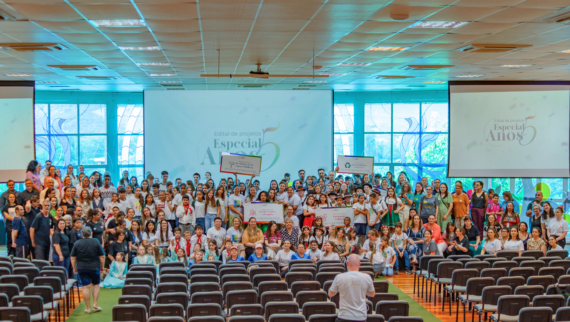 O dia 28 de novembro foi marcado por entusiasmo, celebração e reconhecimento durante o evento de apresentações e premiação do 5º Edital de Projetos: Formar para Transformar, que reuniu cerca de 400 pessoas de 17 municípios, entre professores, alunos, secretárias da educação dos municípios da Região Central do Estado, conselheiros da Fundação Antonio Meneghetti e instituições parceiras.