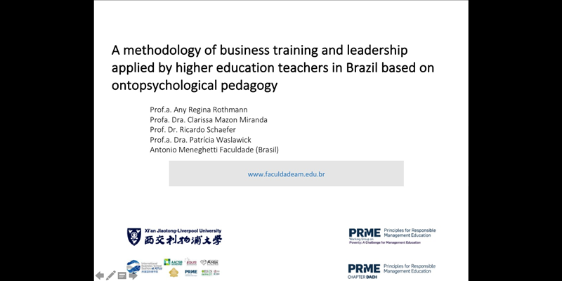 Seguindo o fuso horário de Pequim, os trabalhos foram apresentados na madrugada desta terça-feira para quarta-feira. Os temas das contribuições apresentadas pelos professores da AMF tiveram relação com os tópicos debatidos em diferentes salas de trabalho do evento. Na sala que discutiu o tema geral do congresso, a AMF apresentou o trabalho “Uma metodologia de formação em liderança com base na pedagogia ontopsicológica aplicada por professores da educação superior no Brasil”. Na sala que discutiu “Sustainability Mindset” (Mentalidade Sustentável), os professores da AMF falaram sobre “A inserção dos Objetivos de Desenvolvimento Sustentável da ONU na educação superior aliados à aplicação da pedagogia ontopsicológica”. Em uma apresentação paralela sobre economia circular que era também parte do programa da conferência, a AMF apresentou o trabalho “Projeto OIKOS: o estudo de caso de um projeto de reciclagem no interior do Brasil”. Esse trabalho contou com a participação da estudante do curso de Direito, Monique de Oliveira Goulart.
