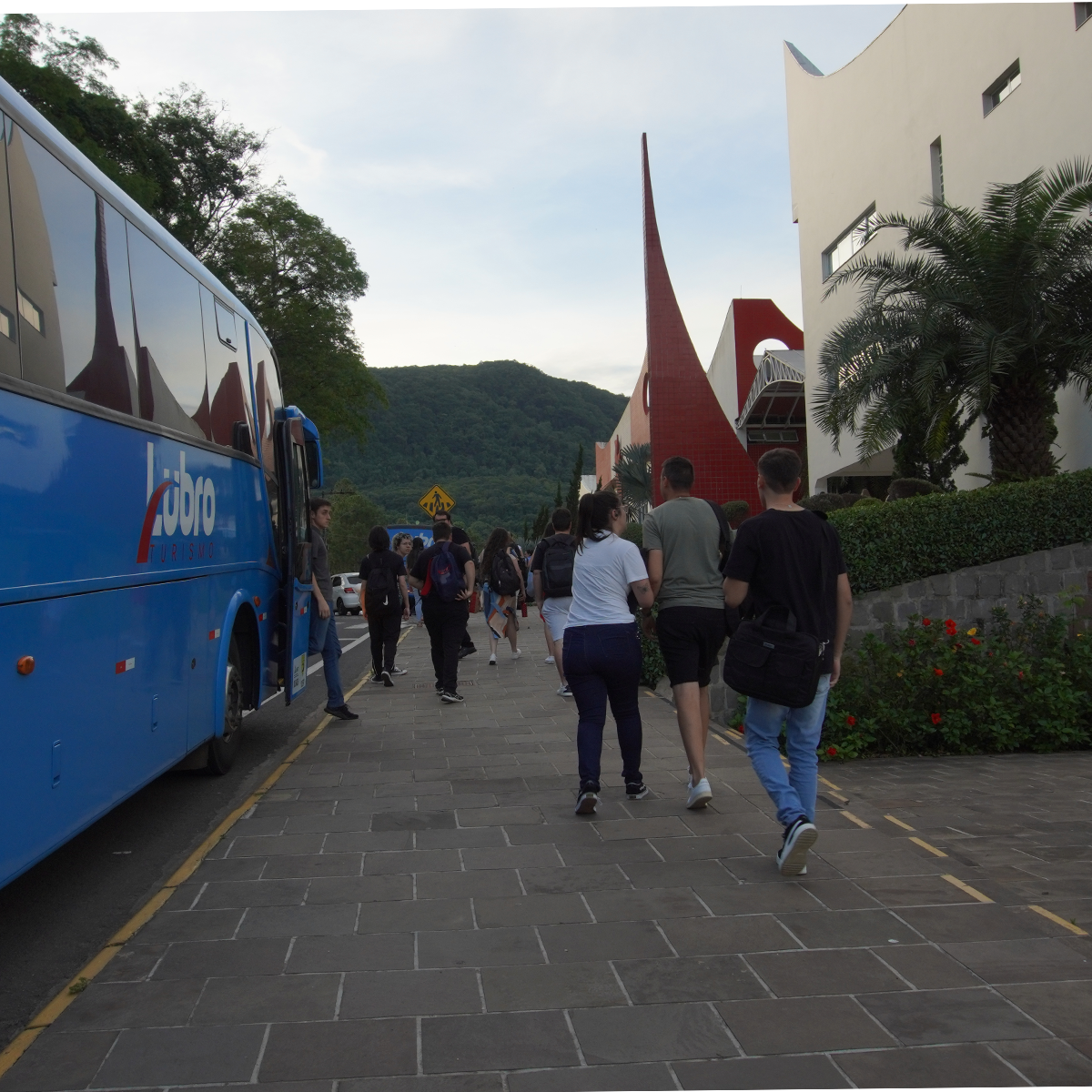 A infraestrutura da AMF também apoia o projeto, com um estacionamento próprio para os ônibus. Essa estrutura assegura maior acessibilidade, especialmente em dias de chuva, além de organizar o fluxo de veículos no campus, beneficiando tanto os alunos quanto os demais usuários.